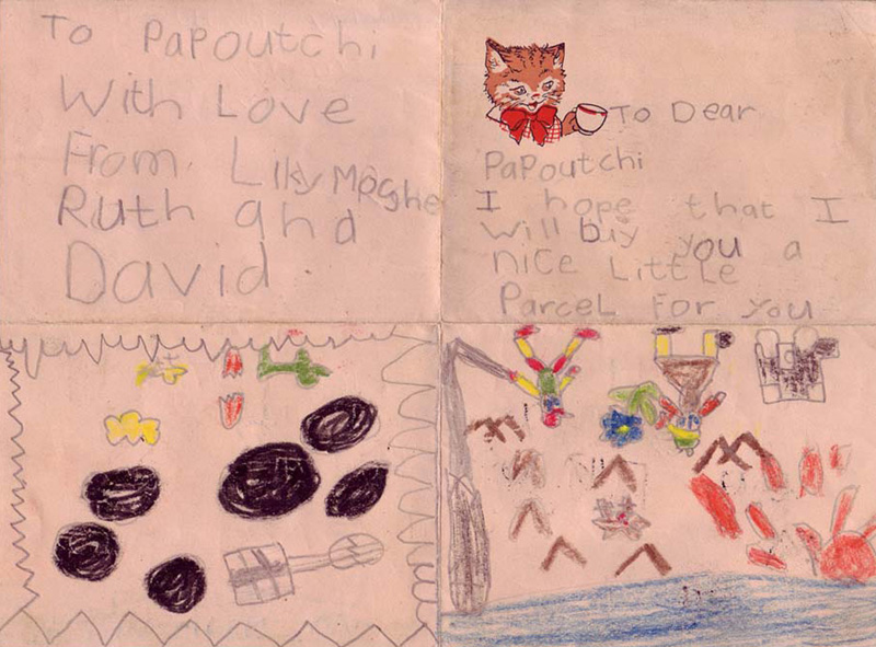 To Dear Papoutchi I hope that I will buy you a nice little parcel for you To Papoutchi With love from, Liky Moshe Ruth and David