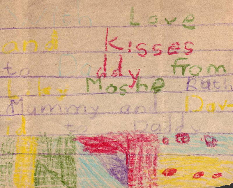 With love and kisses to Daddy from Liky Moshe Ruth Mummy and David to Daddy