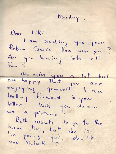 I am sending you your Robin Comic. How are you? Are you having lots of fun?