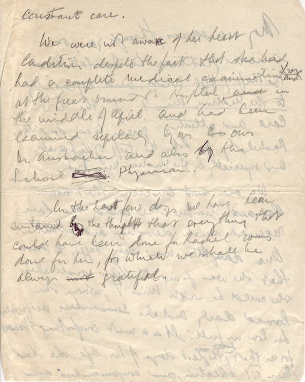 Draft letter – undated, following Rachel’s death
