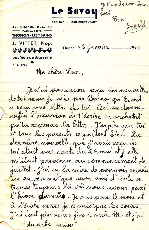 I hope now that you will receive this letter safely but I know that you won’t have it before March. I ask you now to pass on to all the family, my best wishes for 1941. The wishes will arrive really late but better late than never. And to you too, my dear Lore, I wish you a good and happy year and always think that I would really like to be together with you.