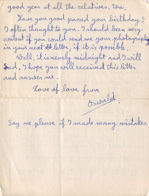 Have you good passed your birthday? I often thought to you. I should been very content if you could send me your photography in your next letter, if it is possible.
