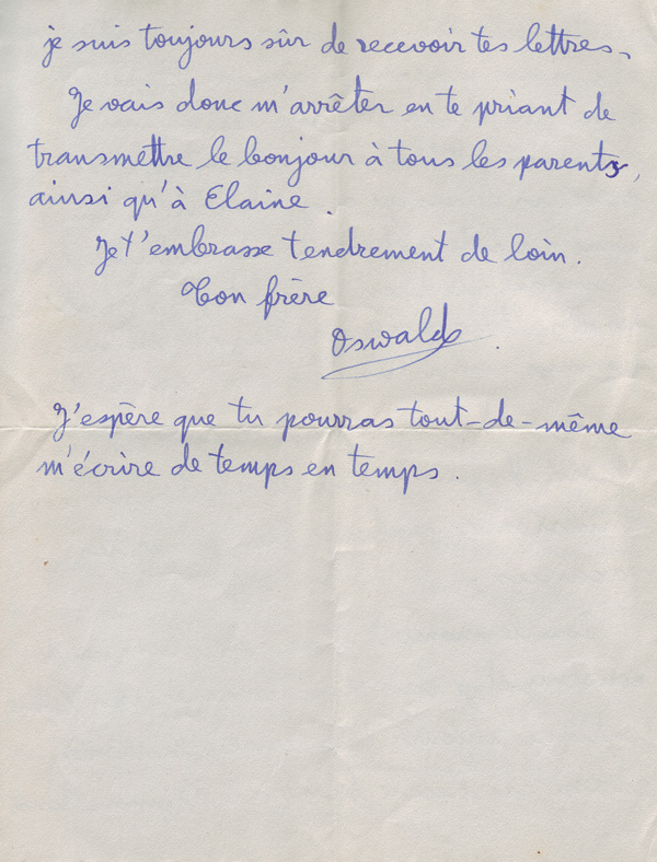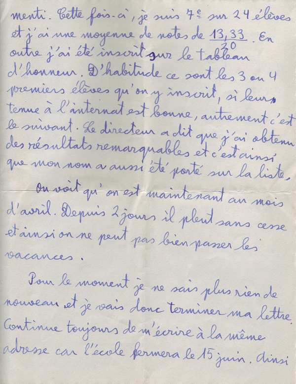 For the moment, I don’t know anything else new and so I am therefore going to end my letter. Always continue to write to me at the same address as the school will close the 15th June. Then I am always sure to receive your letters.