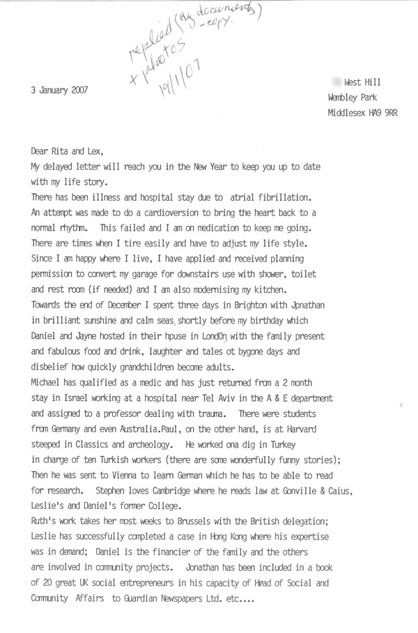 My delayed letter will reach you in the New Year to keep you up to date with my life story.