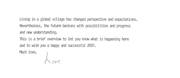This is a brief overview to let you know what is happening here and to wish you a happy and successful 2007.