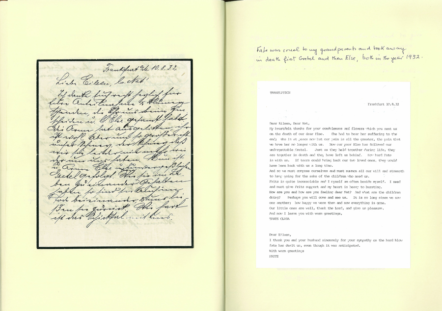A letter that Clara and Lore's father, Fritz, wrote to Lore's Aunt Eileen and Uncle Nat