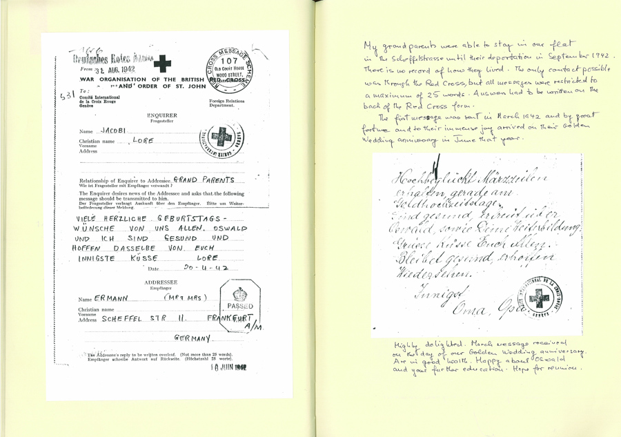 Red Cross-facilitated brief correspondence between Lore and her grandparents after their deportation to concentration camp in September 1942