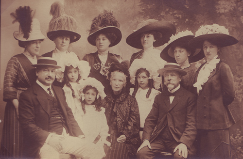 L to R Seated: Adolf Elsaesser, Hilda Elsaesser, Phyllis Elsaesser, Henrietta Elsaesser, Eileen Elsaesser, Joseph Jacobi Belmont