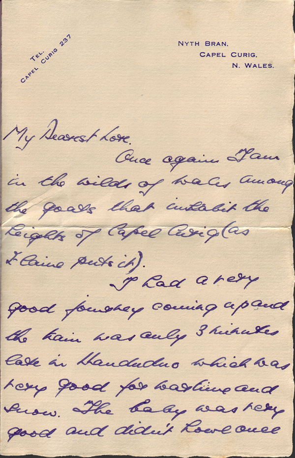 I had a very good journey coming up and the train was only 3 minutes late in Llandudno which was very good for wartime and snow. The baby was very good and didn’t howl once during the whole journey. Its father a young 2nd lieutenant of 23 was very funny. He first of all asked me if I was a married man (he must have taken you for my wife) and then he said, “It is a great trial being a father”. I roared as the kid was only six weeks old!