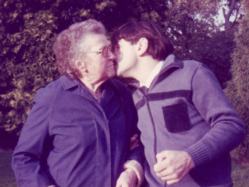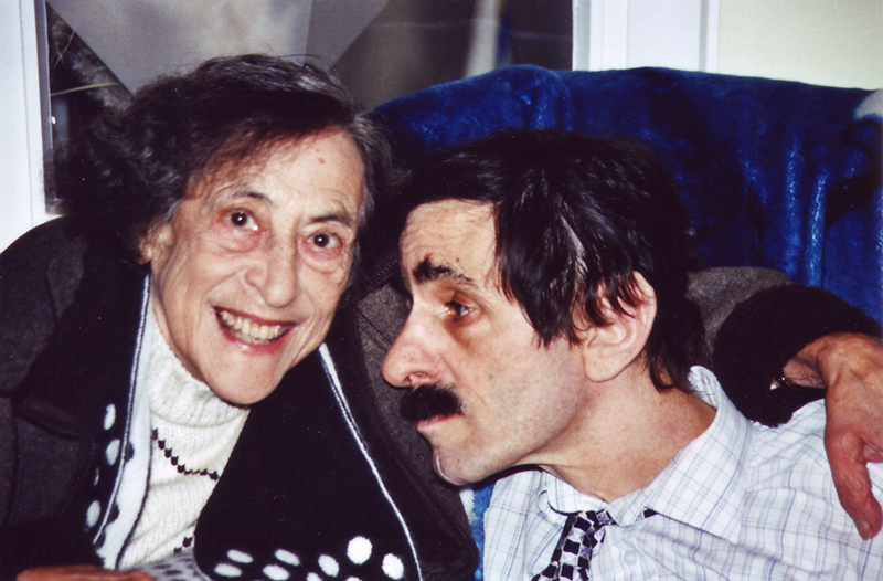 Moshe and his mother, Lore, sitting on a bench