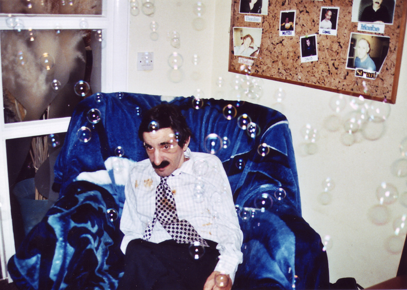 Moshe surrounded by bubbles