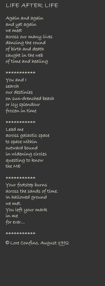 NB: No audio has yet been found for the final poem in the LIFE AFTER LIFE collection