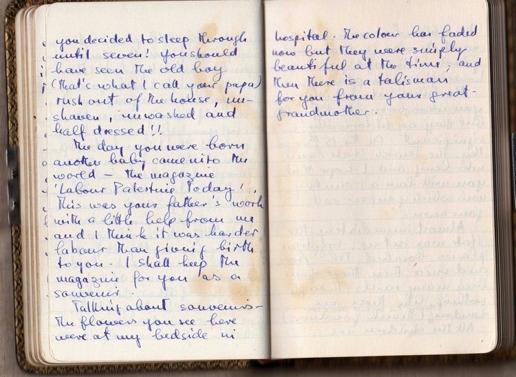 The day you were born another baby came into the world – the magazine Labour Palestine today, this was your father’s work with a little help from me and I think it was harder labour than giving birth to you. I shall keep the magazine for you as a souvenir.