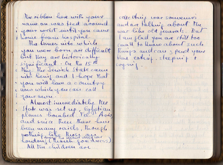 The times into which you were born are difficult but they are historically significant, On 15th May the Jewish state came into being and I hope that you will have a country that you can call your own.
